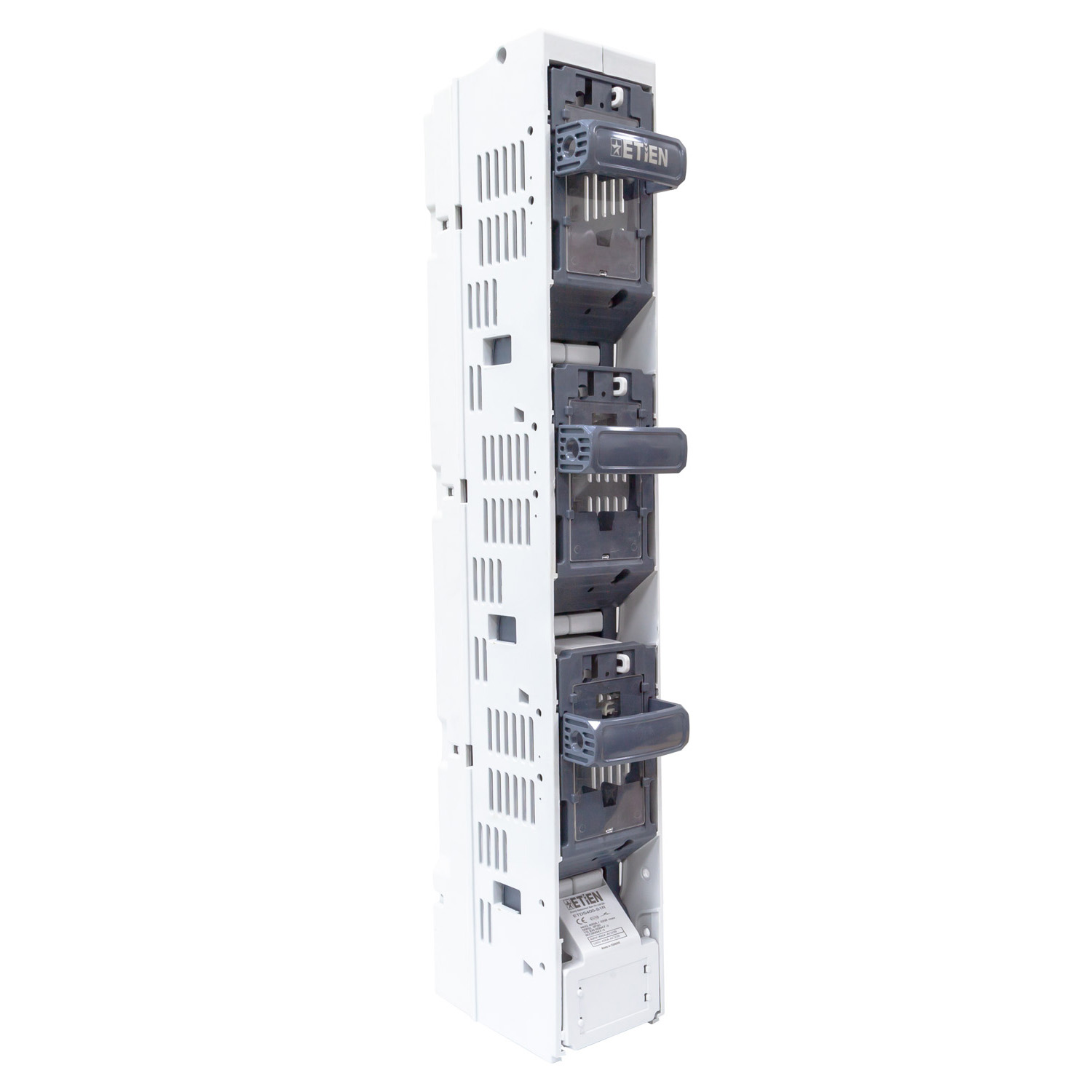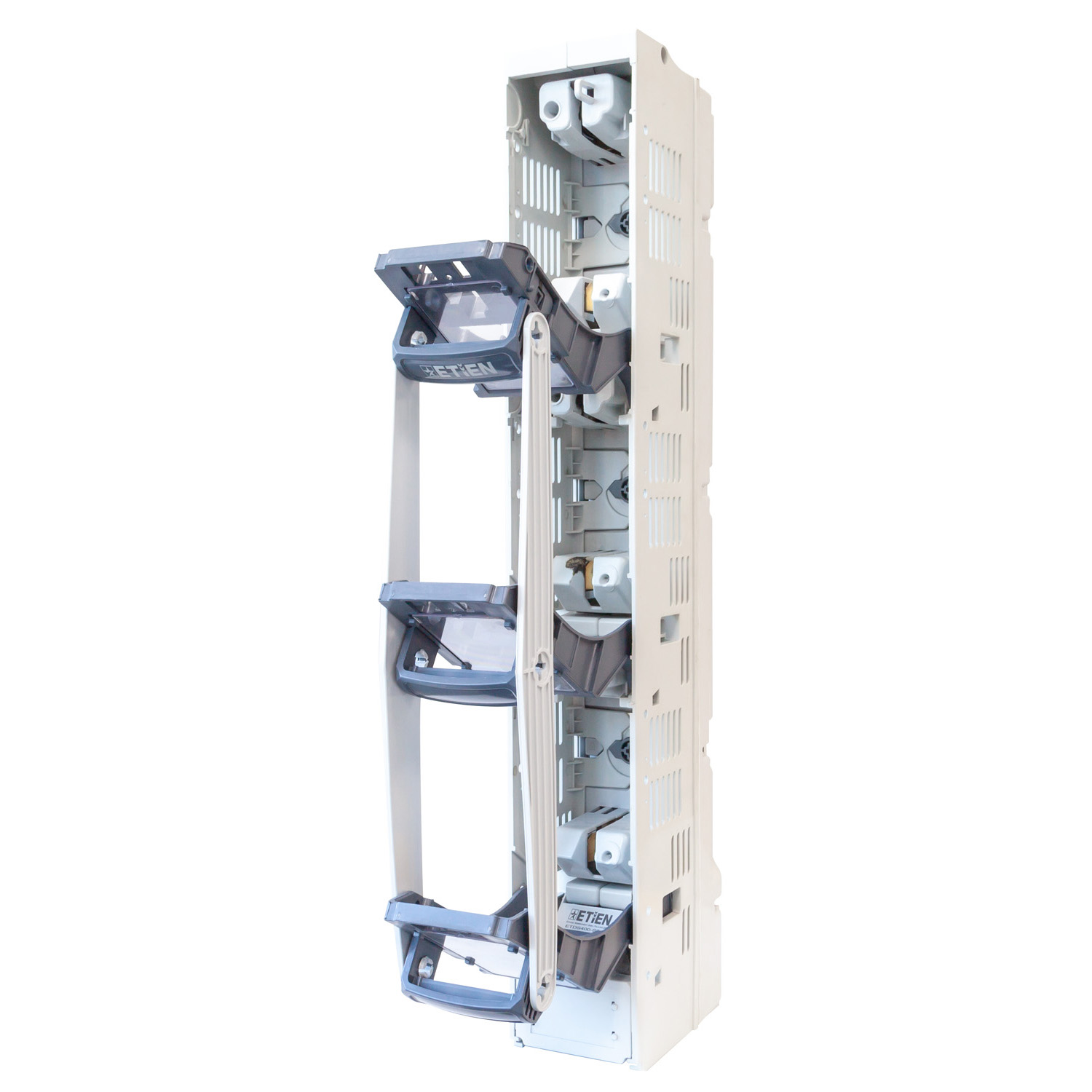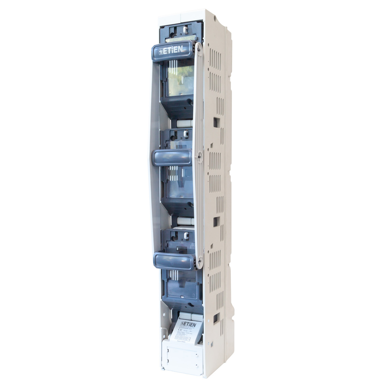 Etien Dikey Sigortalı Yük Ayırıcılar, Elektrik dağıtım panolarında devrenin enerji altında güvenli bir şekilde açılmasını, kapatılmasını sağlar. Sistemde NH Bıçaklı sigortaların güvenli şekilde montajlanması ile kullanıcı dostu bir üründür. Aşırı akımlara karşı şebekenin korunmasını sağlayan NH Bıçaklı sigortalar ile koruma en üst düzeyde tutulur. Entegre akım trafosu eklenerek ölçüm ihtiyaçlarına ve enerji izleme sistemlerine kompakt çözüm sunar.