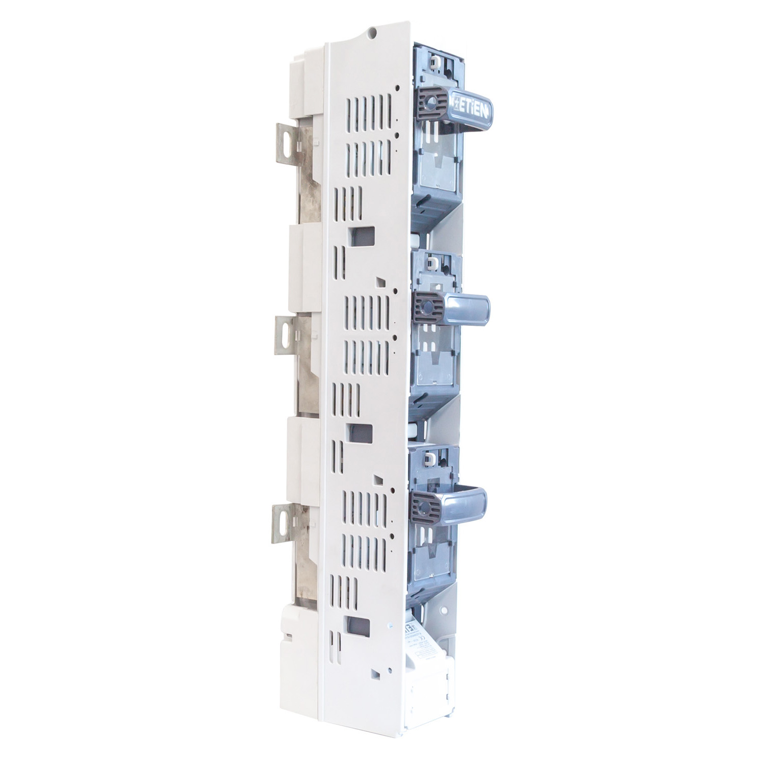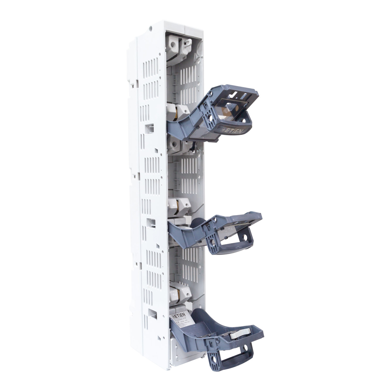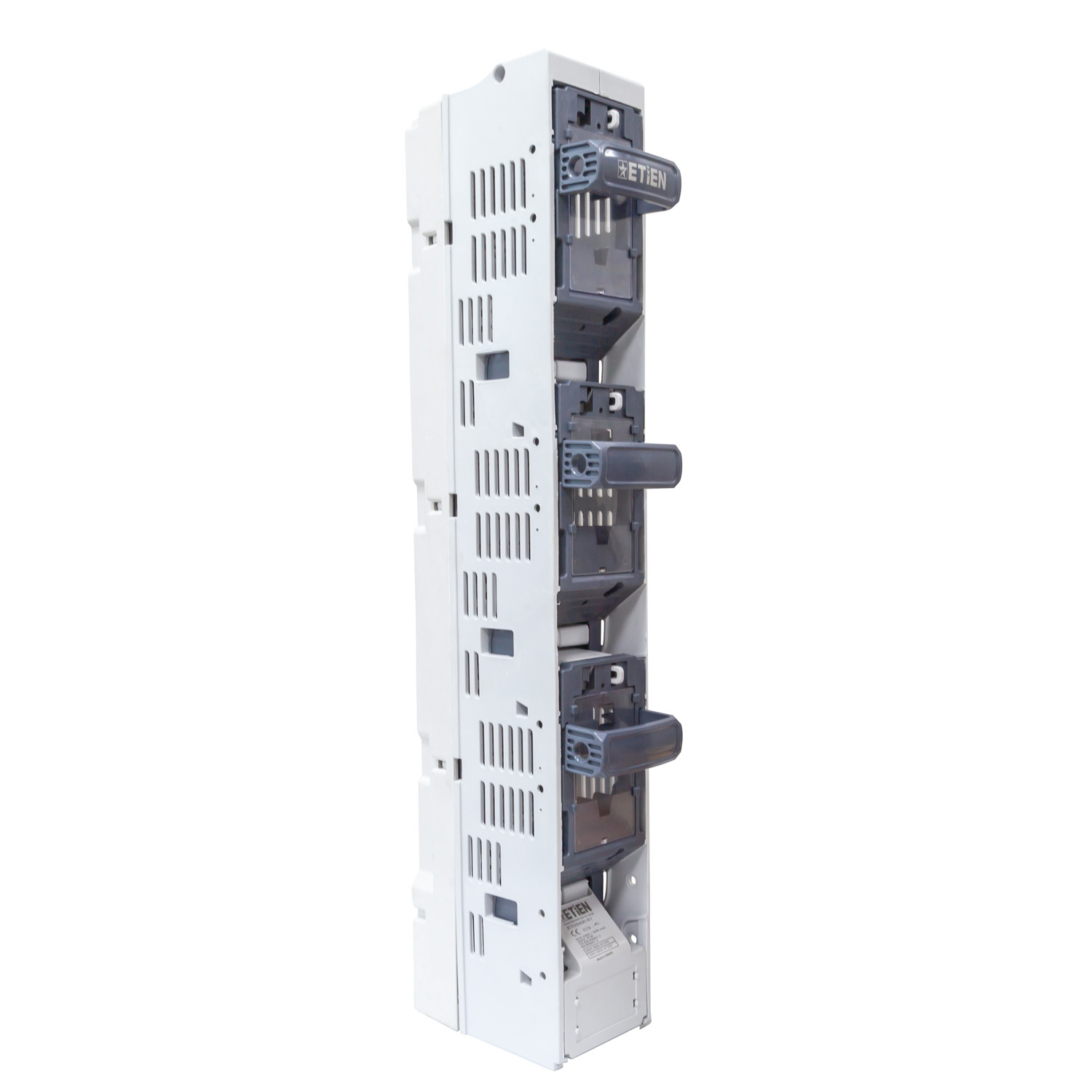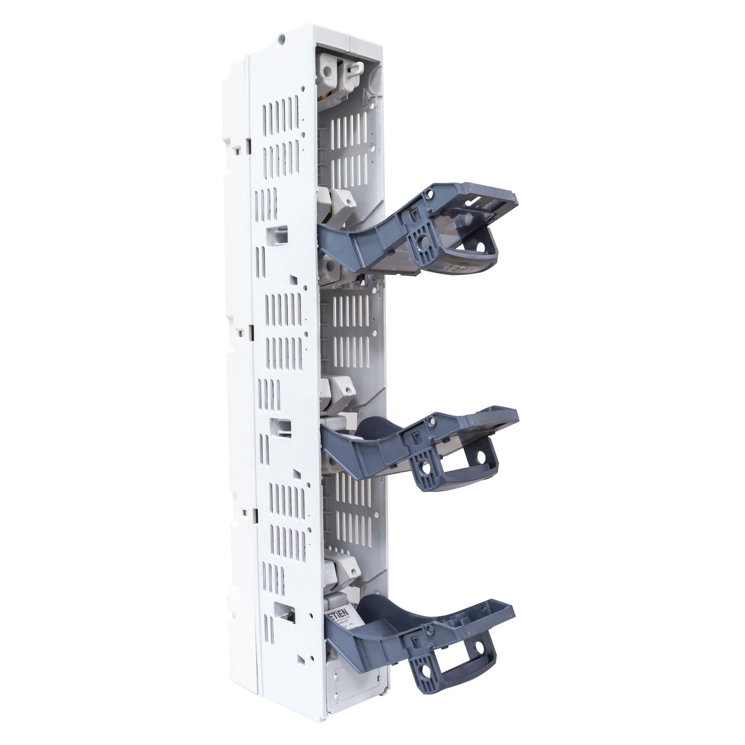 Etien Dikey Sigortalı Yük Ayırıcılar, Elektrik dağıtım panolarında devrenin enerji altında güvenli bir şekilde açılmasını, kapatılmasını sağlar. Sistemde NH Bıçaklı sigortaların güvenli şekilde montajlanması ile kullanıcı dostu bir üründür. Aşırı akımlara karşı şebekenin korunmasını sağlayan NH Bıçaklı sigortalar ile koruma en üst düzeyde tutulur. Entegre akım trafosu eklenerek ölçüm ihtiyaçlarına ve enerji izleme sistemlerine kompakt çözüm sunar.